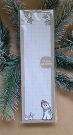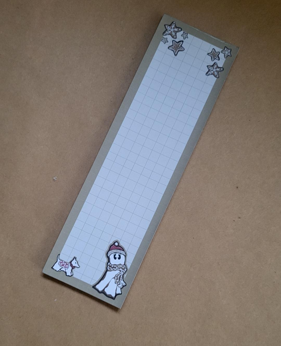 Long notepad featuring Gingerbread Swoopy in all of his delicious grandeur as a cookie. Gridded design makes this notepad great for to-dos, shopping lists, check off agendas, doodles, and more.