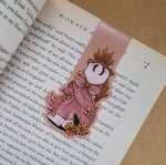 When in use, the bookmark is folded in half with the same image on the front and the back (as shown). When in use, the bookmark measures about 3.125 inches tall. Heavy stock in a satin finish. Low profile magnets secure bookmark to the page without adding bulk to the book or damaging it.
