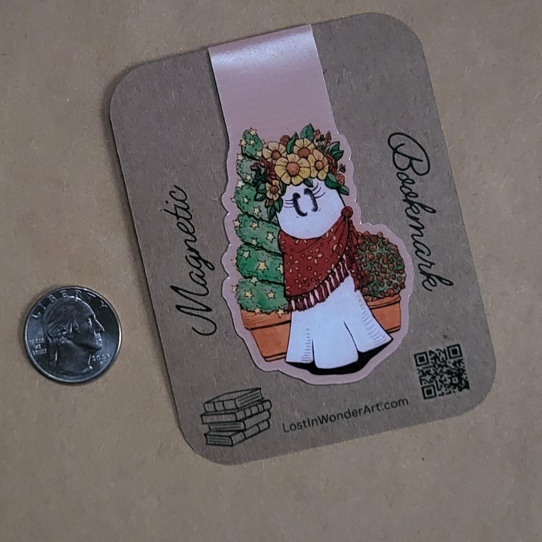 Magnetic Bookmark--Paprika Ghost With Flower Crown