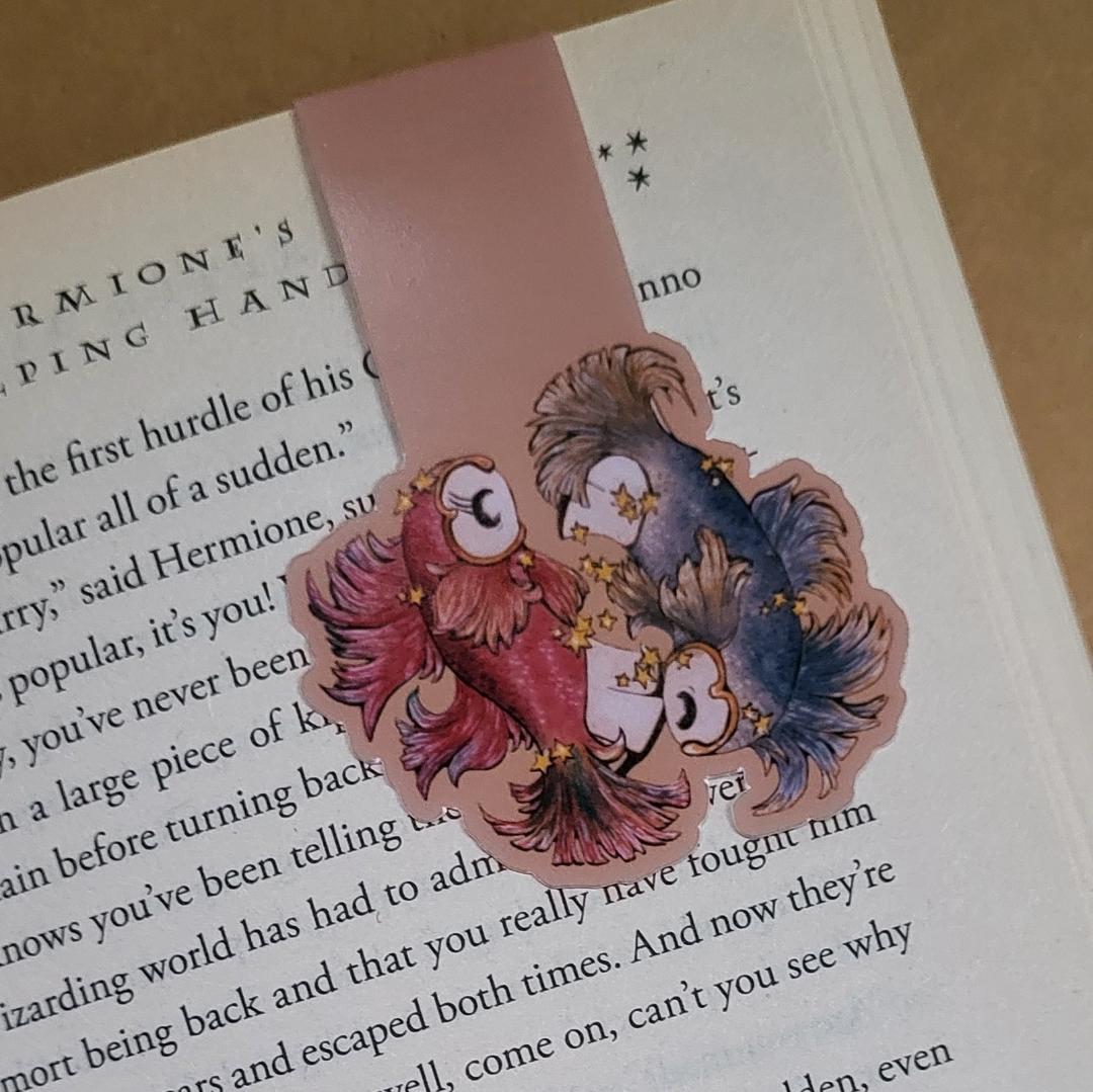 Magnetic bookmark of Swoopy Ghost dressed as a set of fish for the zodiac sign Pisces. What a fun way to express your astrology sign while you're reading.