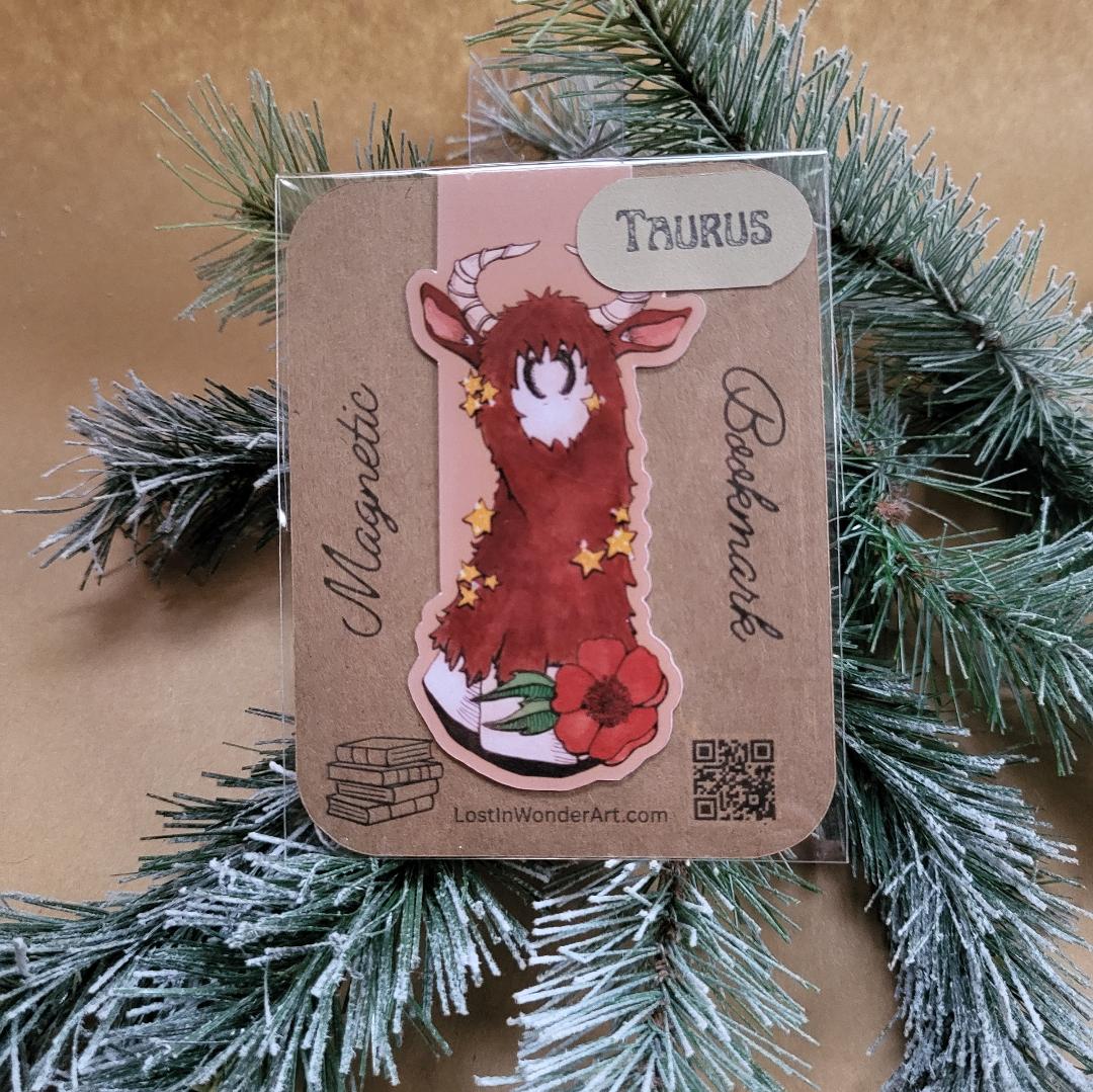 Magnetic bookmark of Swoopy Ghost dressed as Taurus zodiac sign. He can't think of a better way to express your astrology sign while you are reading.