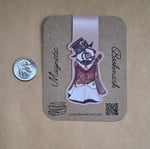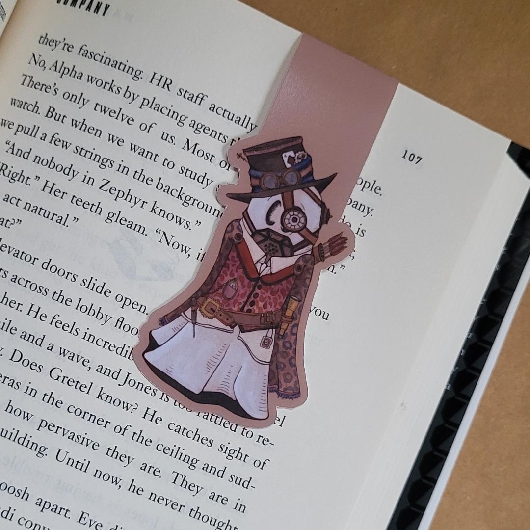 Swoopy Ghost loves to dress up in costumes no matter what day of the year. Here ihe is in a costume that must take a lot of time to get into. He's steampunk here. This magnetic bookmark will securely hold your place in your current read, but the thin profile magnets will not add a lot of bulk to the book.