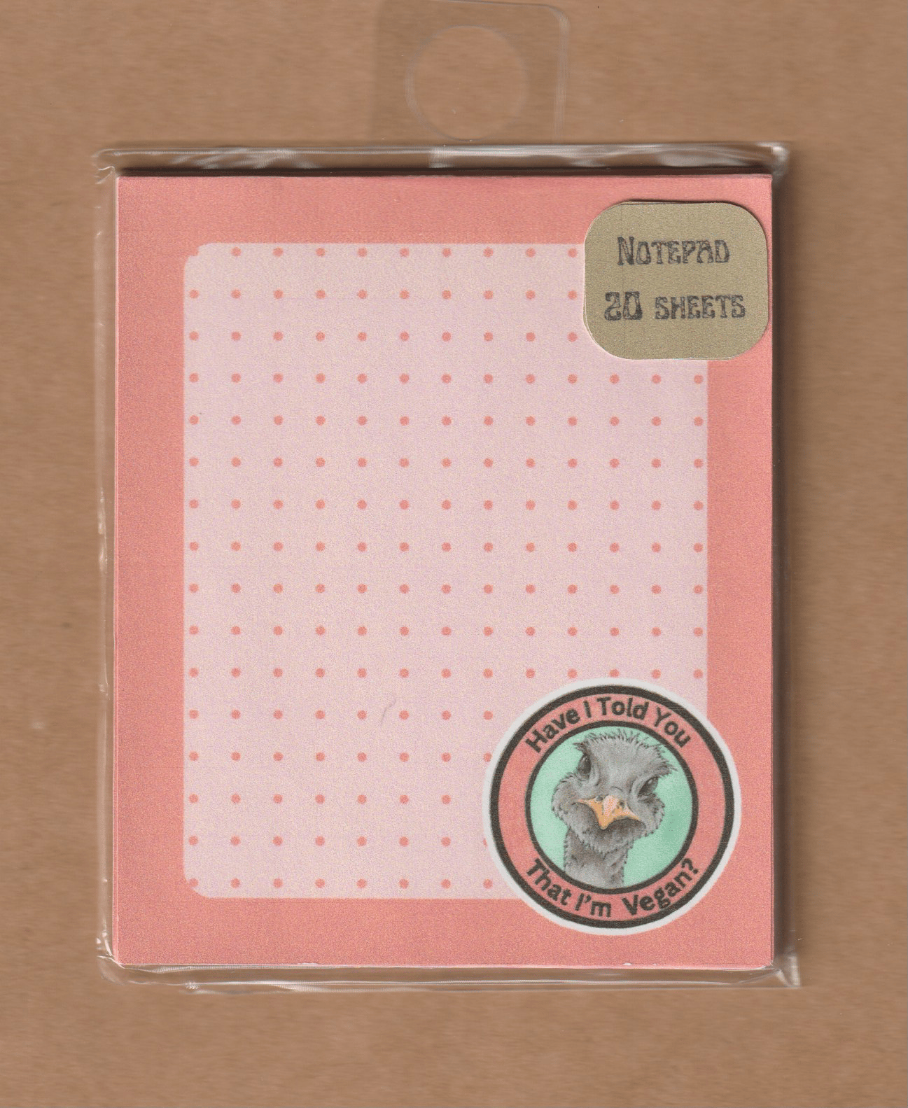 Mini Notepad of Ostrich design with snarky, sassy comment "Have I Told You That I'm Vegan?"