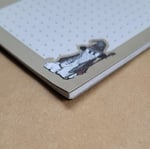 Dot pattern allows you to free form grids to keep your lists, thoughts, agendas, and appointments organized. 24lb paper with chipboard back. Handmade. About 3.5 inches tall by about 3.25 inches wide. 20 pages