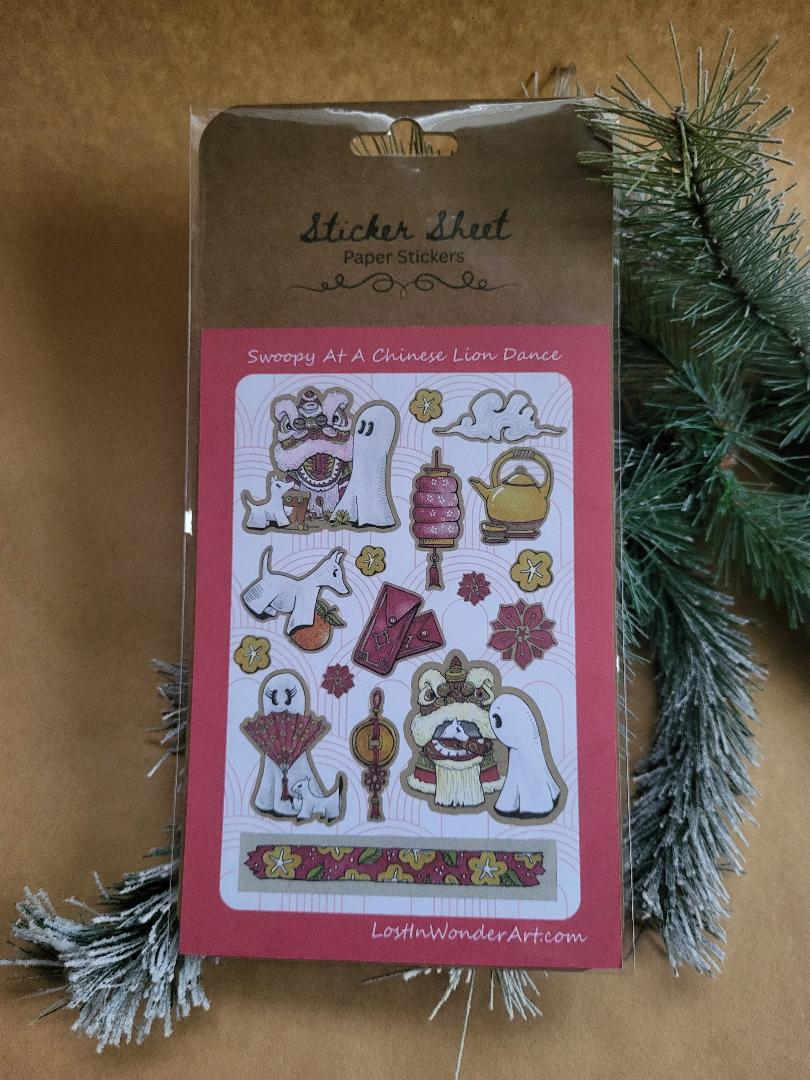 Paper Sticker Sheet--Swoopy Ghost Goes to see the Chinese Lion Dance