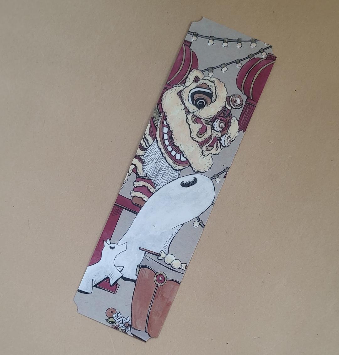Traditional Bookmark--Swoopy at a Chinese Lion Dance