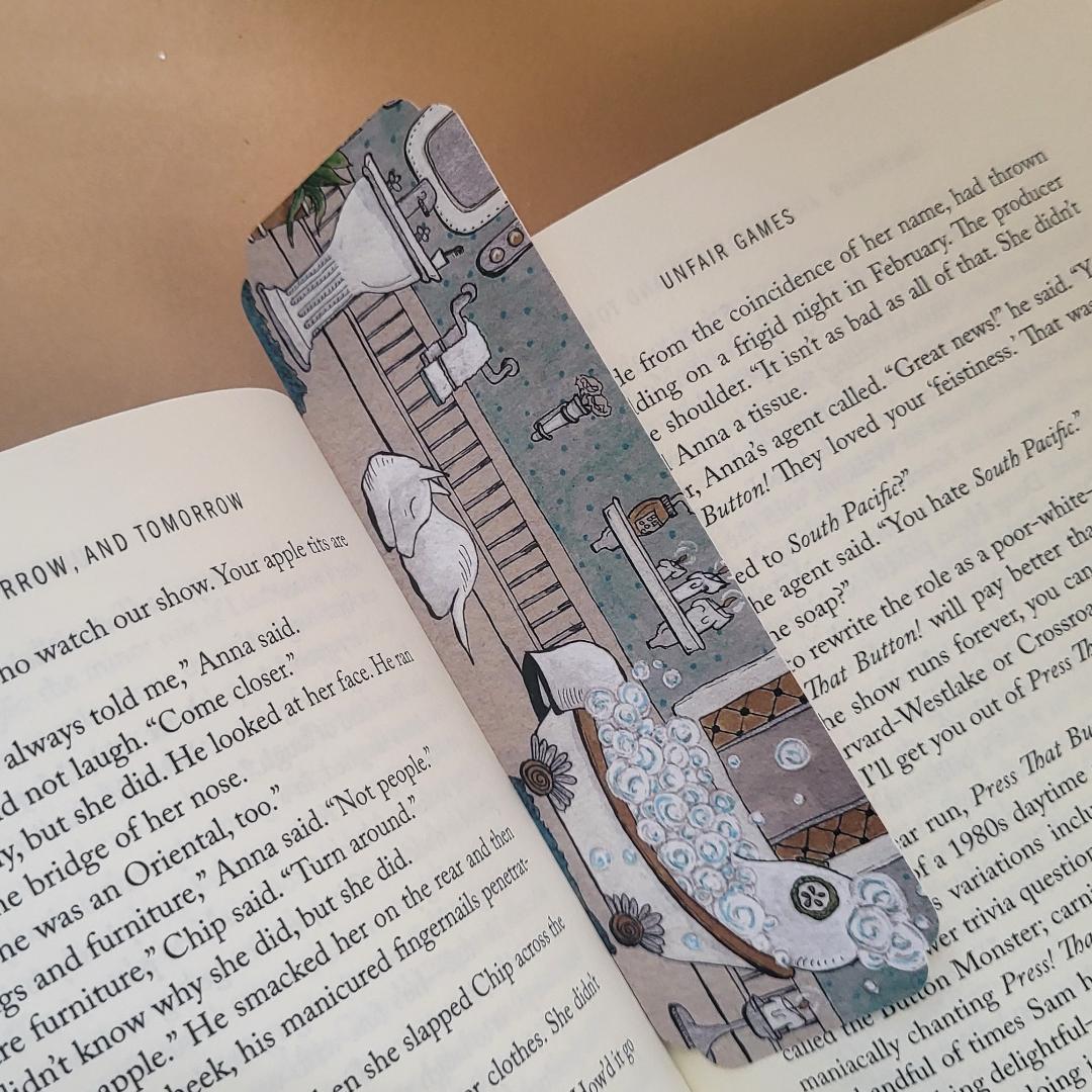 Traditional Bookmark--Swoopy Ghost Taking a Relaxing Bubble Bath