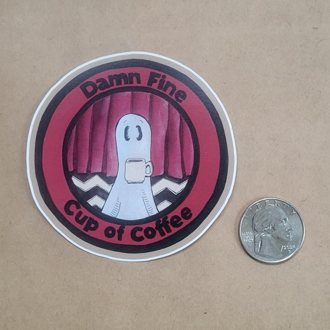 Vinyl Sticker--Swoopy Ghost and Damn Fine Cup of Coffee