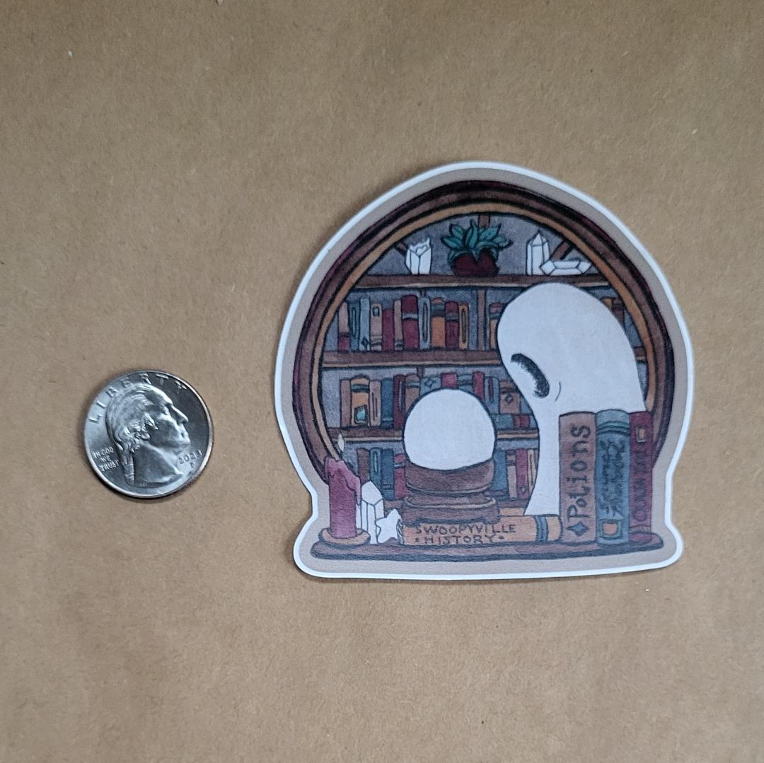 Vinyl Sticker--Swoopy Ghost in Library with Crystals